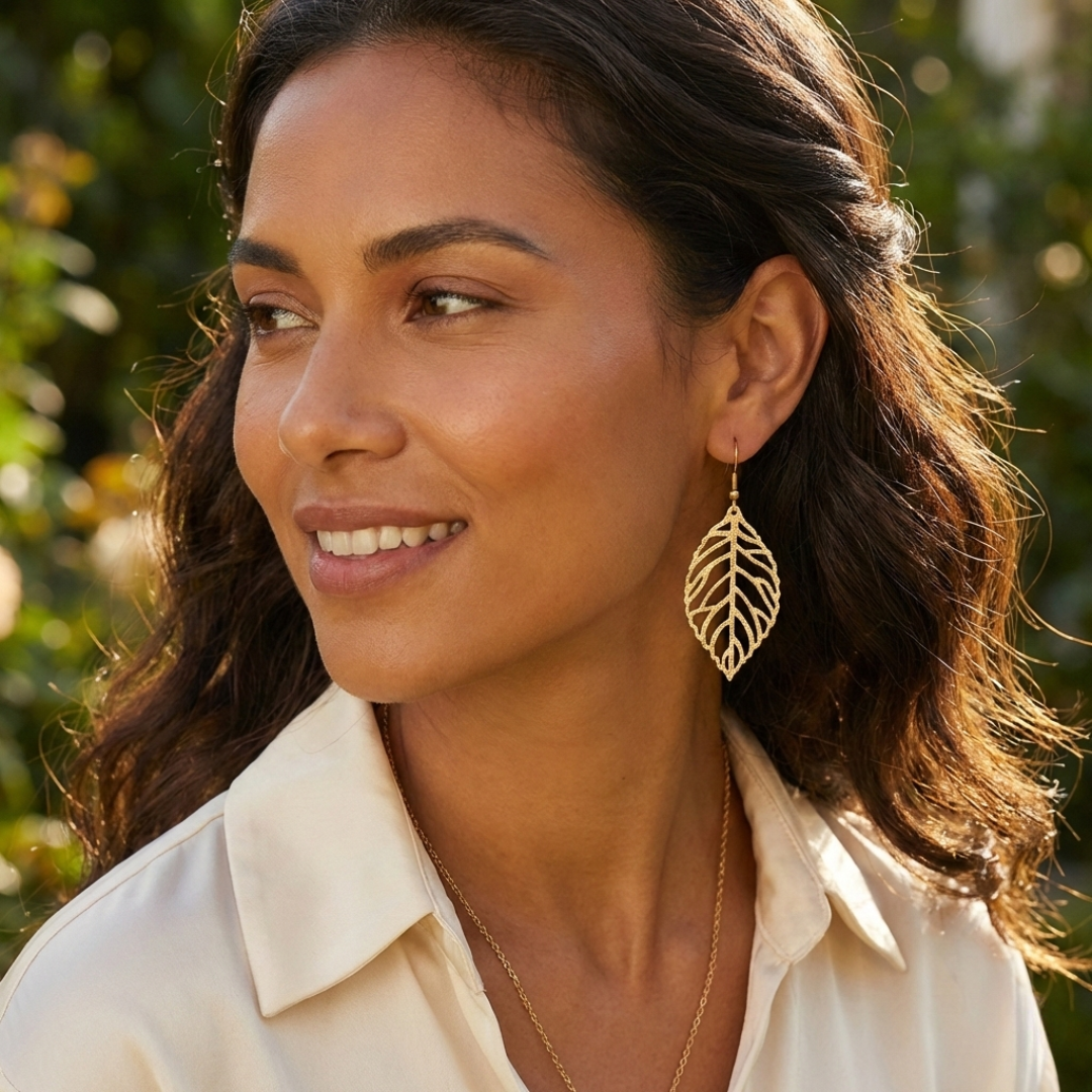 Boucles d'Oreilles Feuille Dorées - Design Botanique Élégant